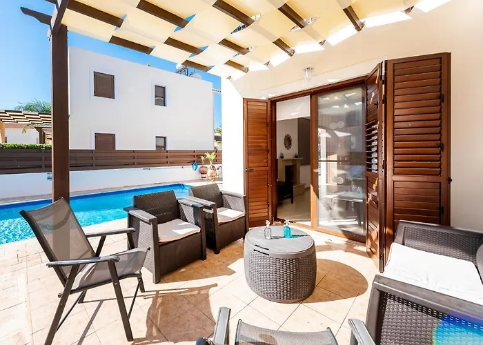 Die 3-Zimmer- Villa Poseidon By Ezoria Villas Agia Napa empfängt Gäste im Stadtteil Ayia Thekla und bietet eine Terrasse.
